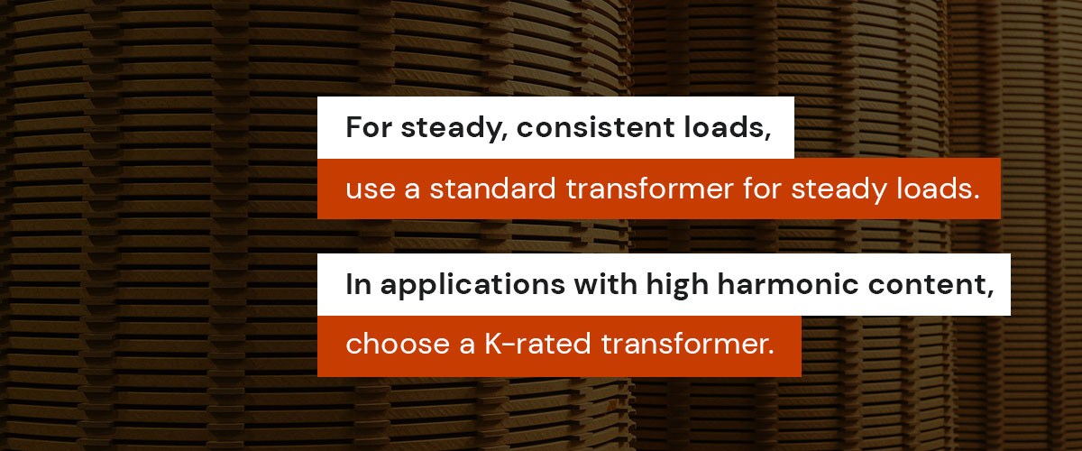 Harmonics can significantly affect transformer performance by causing additional losses and excessive heating, which shortens the transformer’s lifespan. In applications with high harmonic content, such as data centers, renewable energy systems, or facilities using variable frequency drives, it is essential to choose a K-rated transformer. These transformers are specially designed to handle harmonic loads without compromising reliability or longevity.